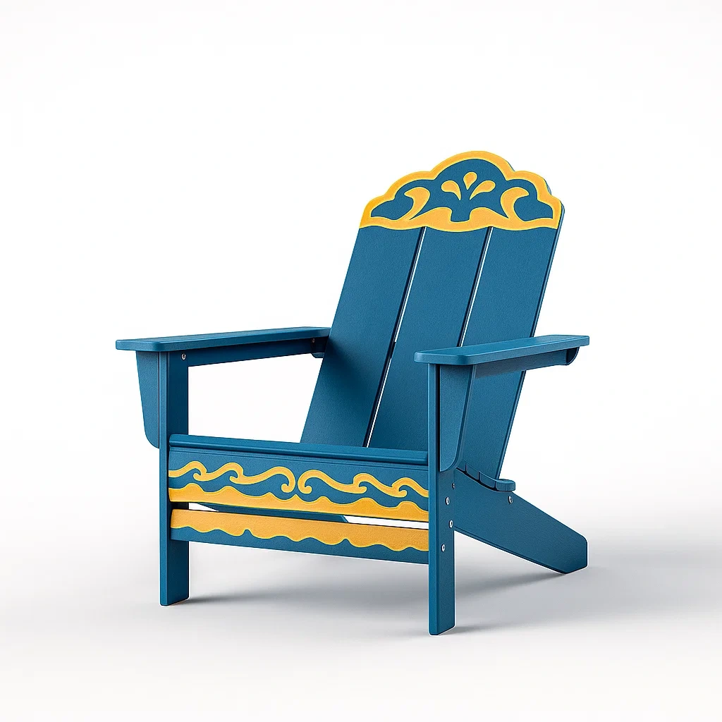 Sedia adirondack in polipropilene blu e giallo con motivo a onde
