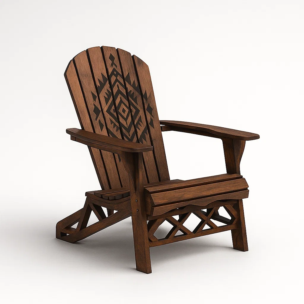 Sedia adirondack in legno massello con decorazioni intagliate