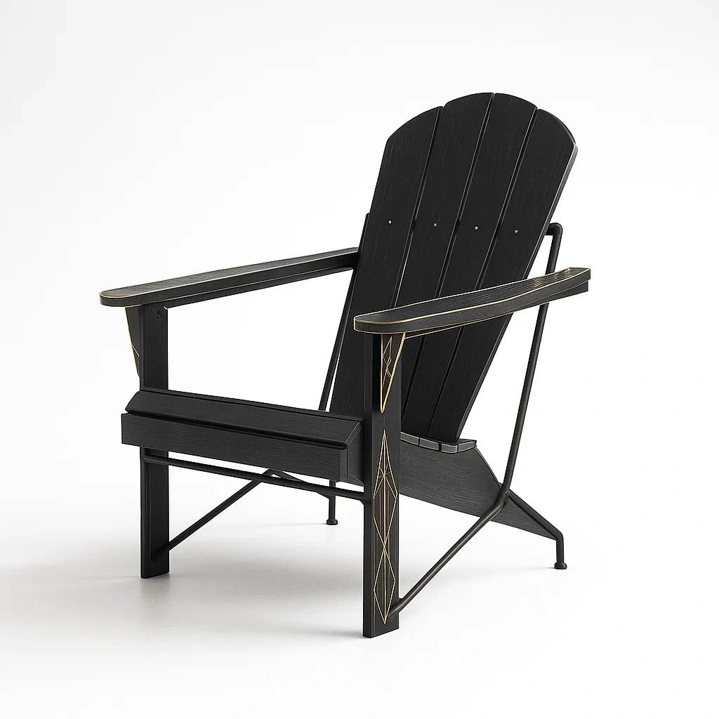 Sedia adirondack in legno composito nero con dettagli dorati