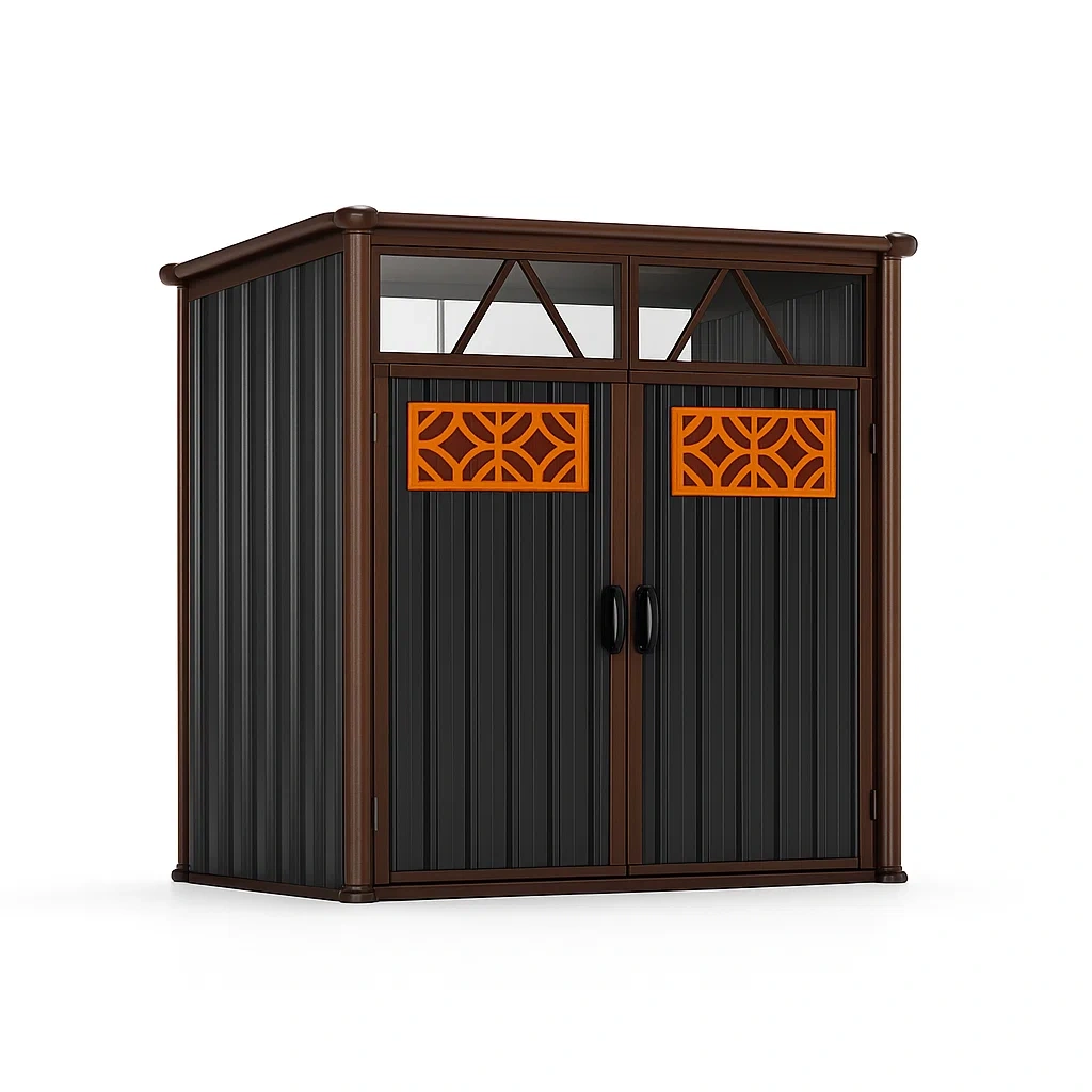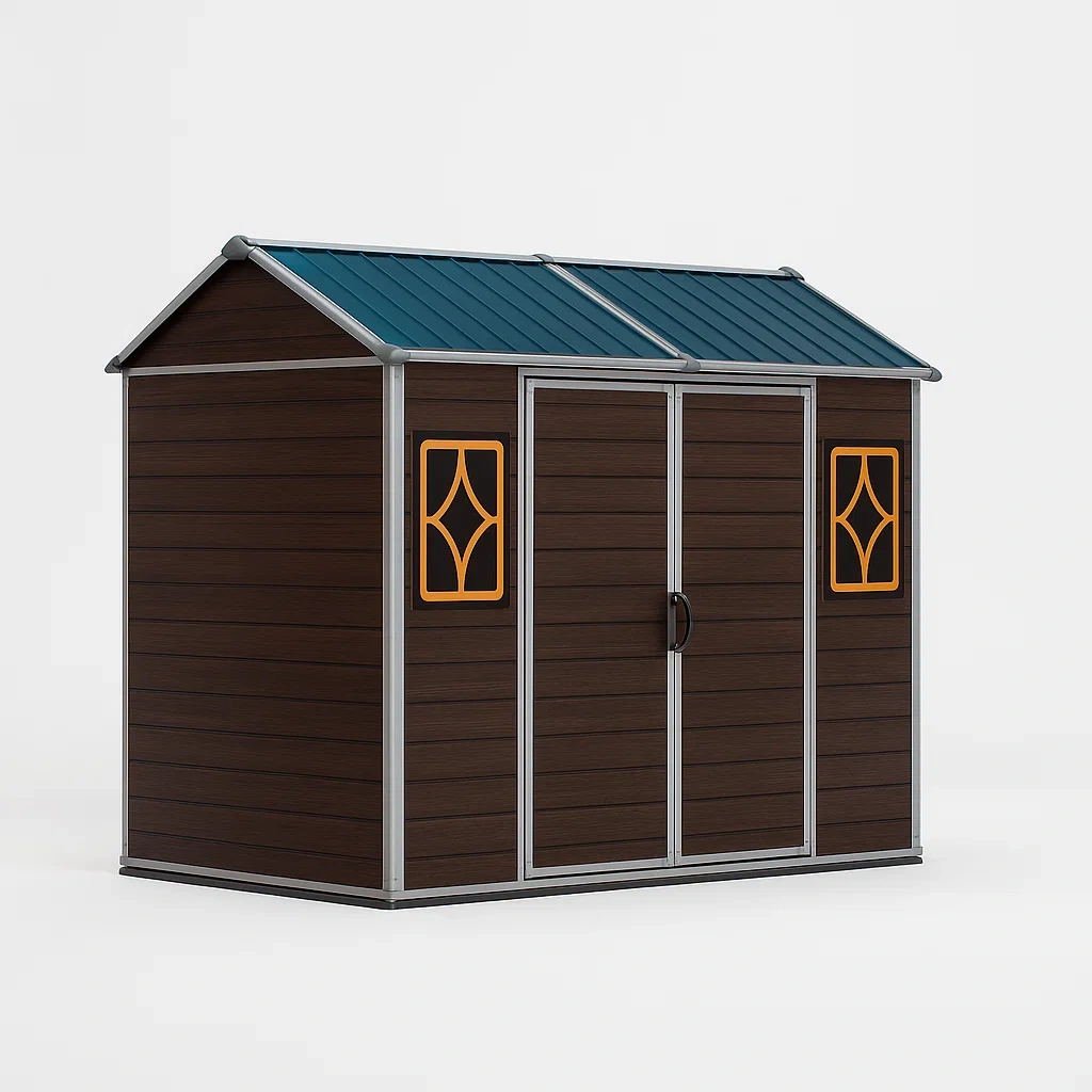 Casetta da giardino in resina marrone con tetto in metallo 170×100×180 cm