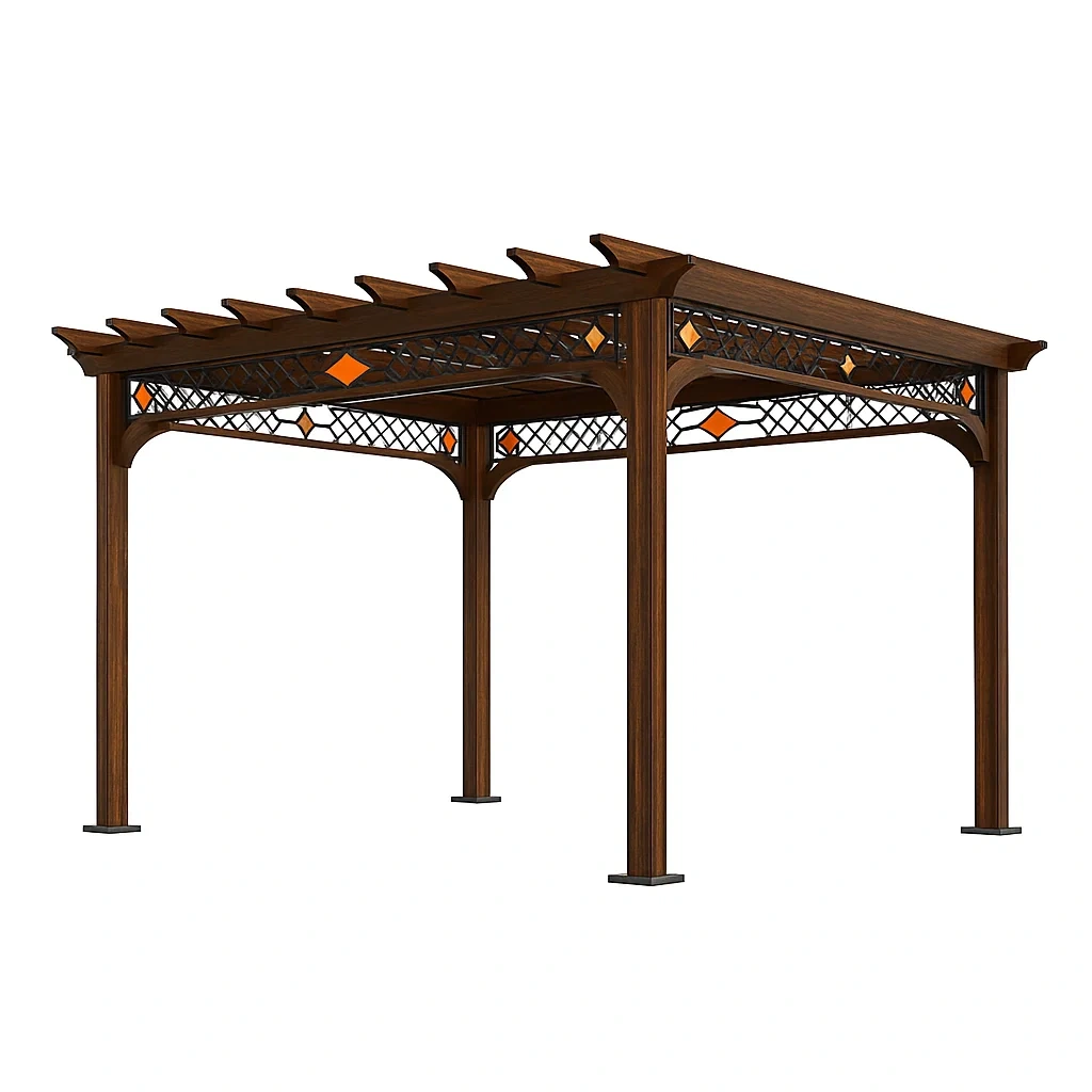 Pergolato quadrato in alluminio con decorazioni floreali 300×300×300 cm