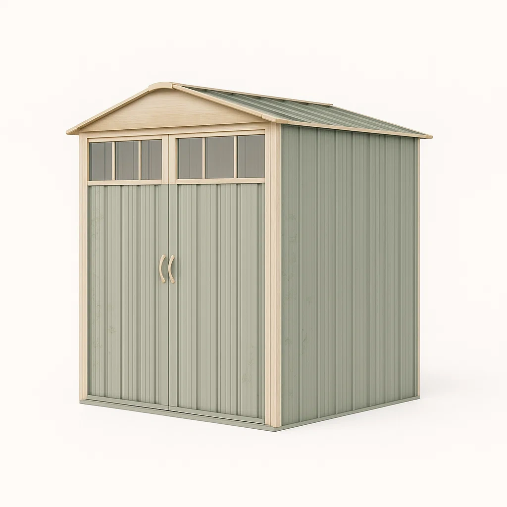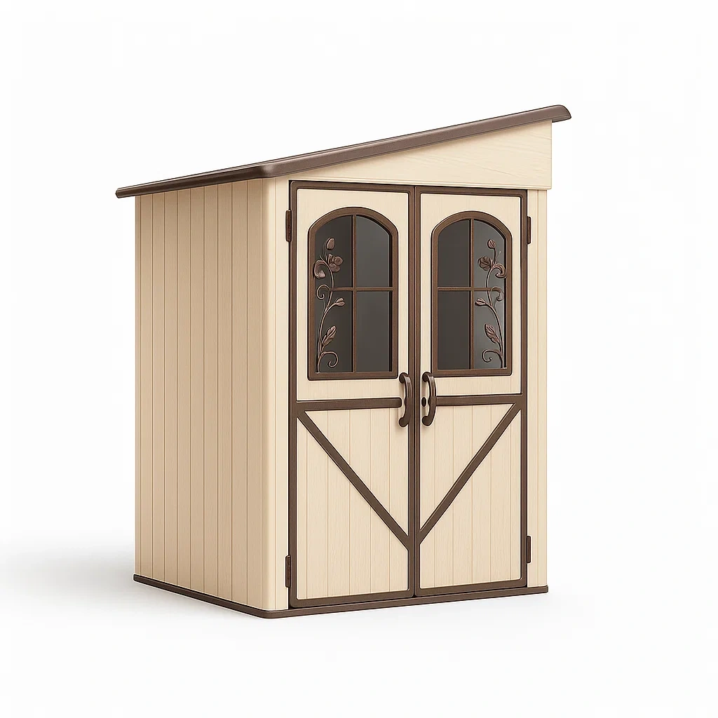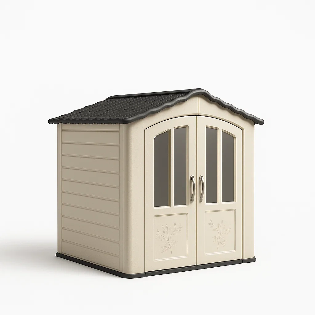 Casetta da giardino in plastica con porte doppie beige e grigio scuro