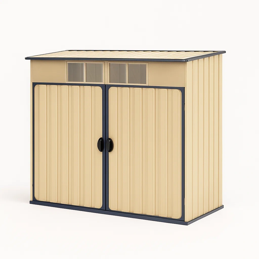 Casetta da giardino in plastica con porte doppie beige e grigio scuro