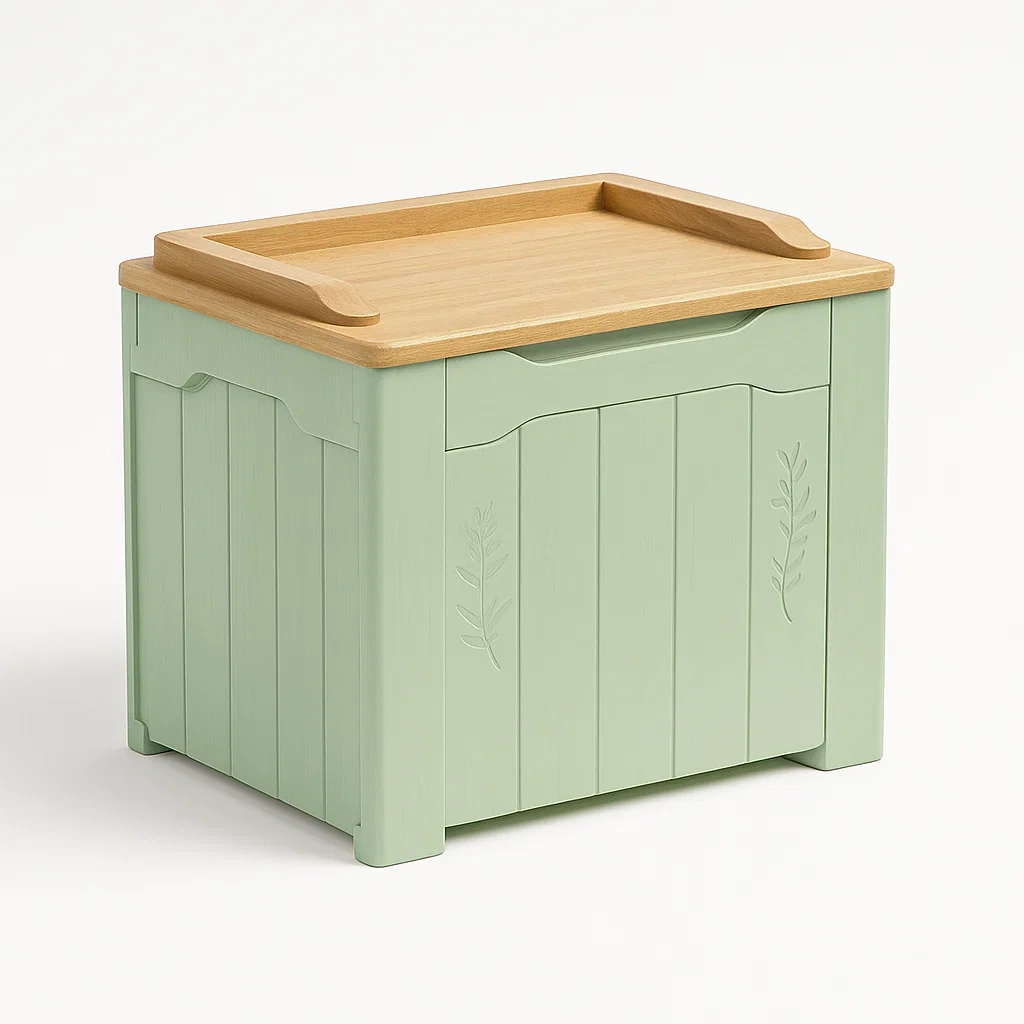 Materiale del prodotto: Coperchio in legno MDF, struttura in legno composito.