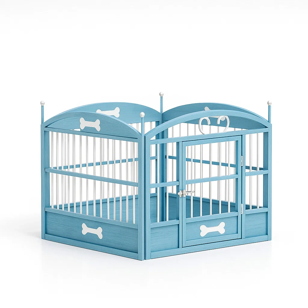 Recinto per animali in legno azzurro con design a osso