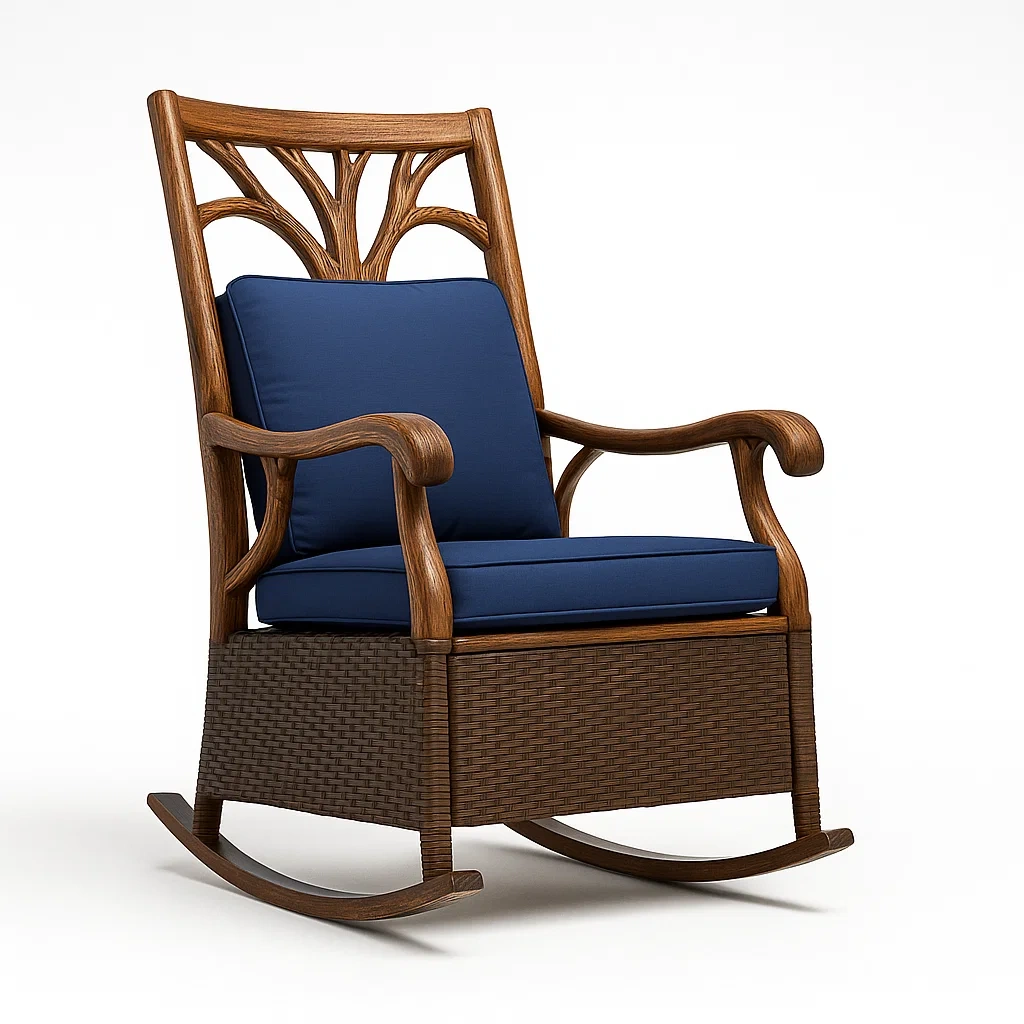 Materiali: struttura in legno di teak, seduta rivestita in tessuto di poliestere con imbottitura in schiuma poliuretanica.