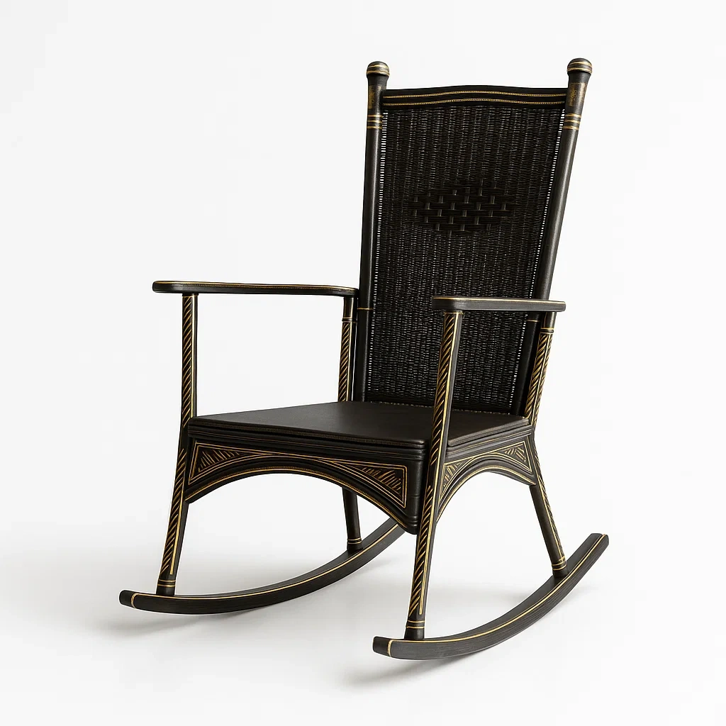 Materiale: Struttura in legno, seduta e schienale in rattan intrecciato